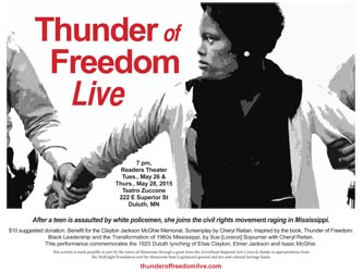 This performance commemorates the 1920 Duluth lynching of Elias Clayton, Elmer Jackson and Isaac McGhie.